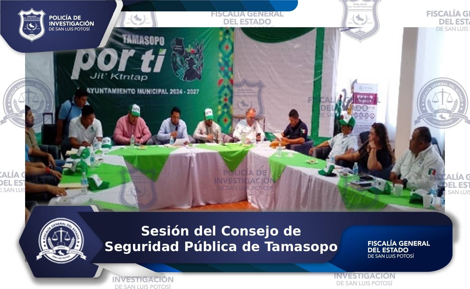 Personal de la Dirección General de Métodos de Investigación (DGMI) de la Fiscalía General del Estado de San Luis Potosí (FGESLP) acudió a la novena sesión ordinaria del Consejo Municipal de Seguridad Pública de Tamasopo.