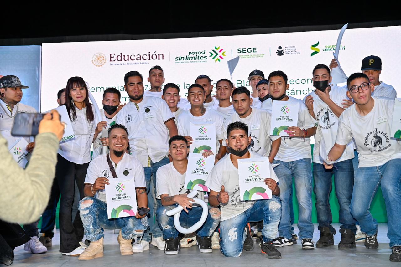 El Presidente Municipal también agradeció el respaldo del Gobierno del Estado, encabezado por Ricardo Gallardo Cardona, así como la participación de las familias y estudiantes que concluyeron sus estudios de primaria y secundaria a través de los programas de educación para adultos; durante el acto, personas beneficiarias recibieron certificados oficiales que acreditan la conclusión de sus estudios, en medio de aplausos de familiares y asistentes.